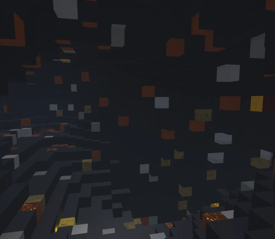 Caves are large, open caverns that can be found while mining. They are random in both size and shape, and can generate in any layer. Caves can spawn as one of several types based on world, which changes the block that makes up the cave as well as what ores are able to generate within it; this allows certain ores to generate outside the layer they are normally found in. Some ores are exclusive to caves and/or certain cave types, and are commonly referred to as Cave Exclusives.